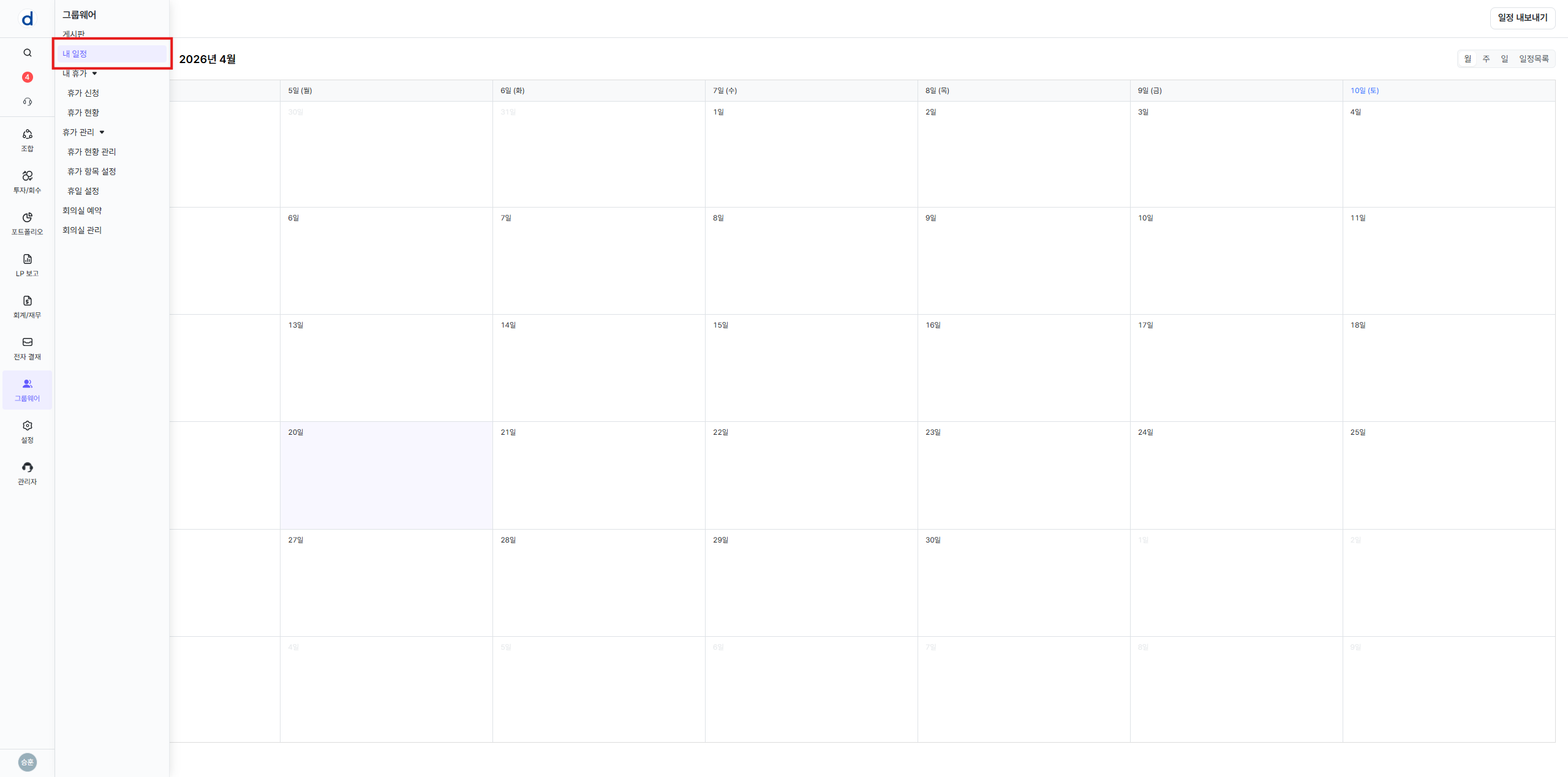 그룹웨어 > 내 일정 메뉴를 클릭하여 이동 해주세요.