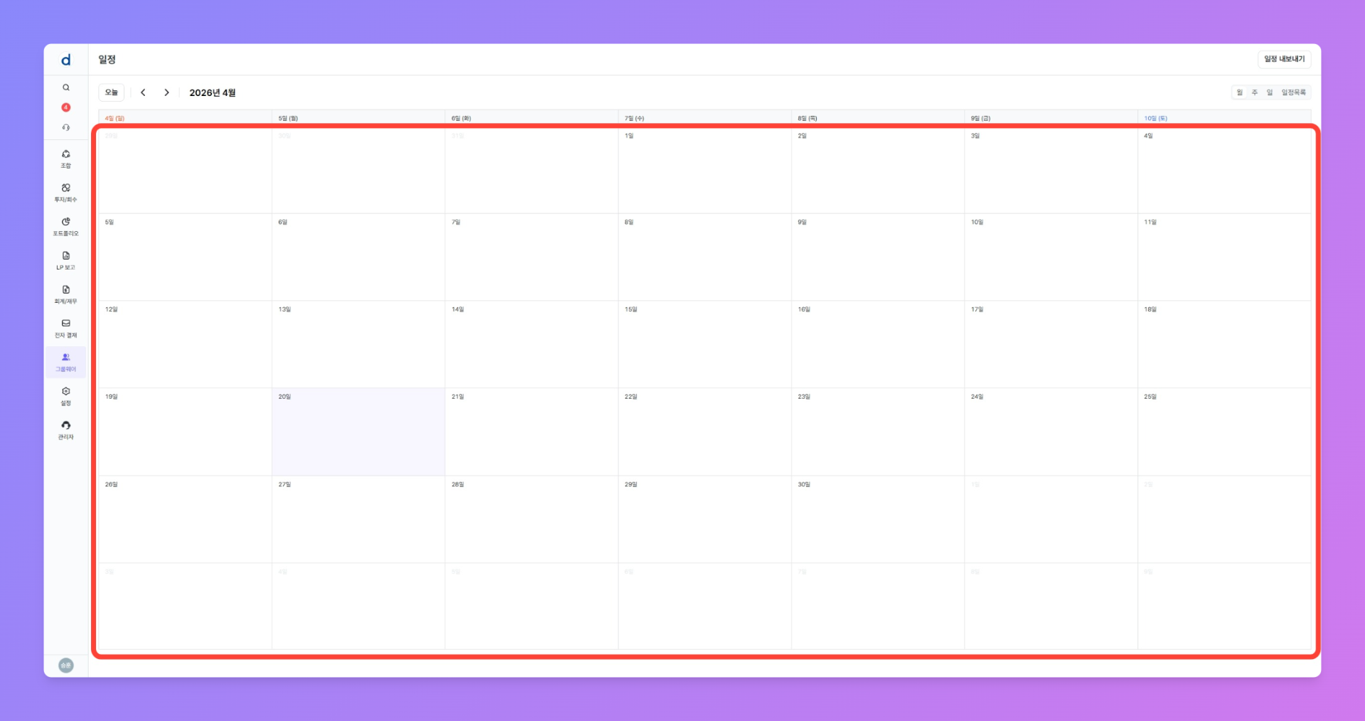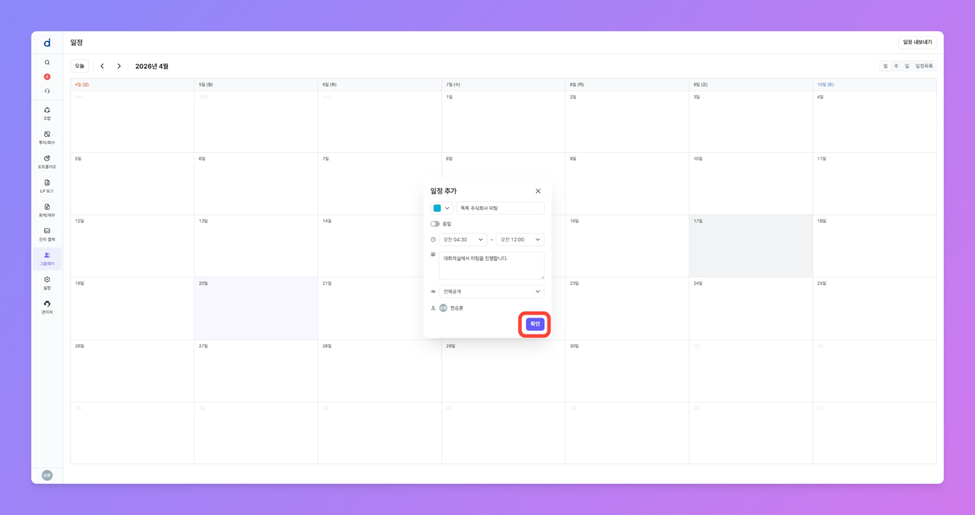 본 기능은 캘린더를 등록하며 일정을 관리하기 위한 기능입니다.