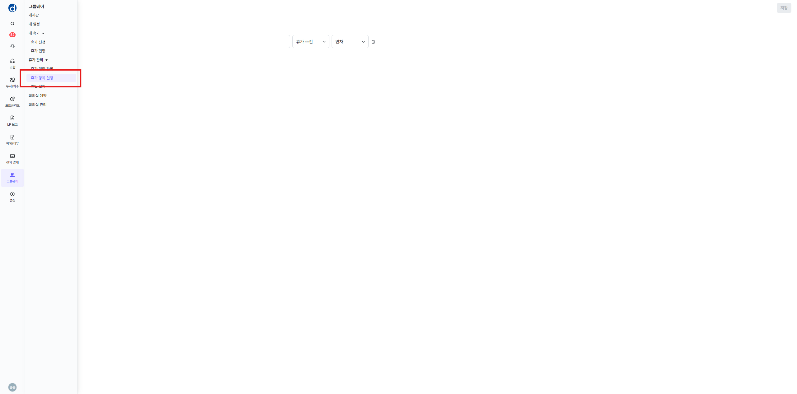 본 기능은 관리자가 구성원에 휴가를 부여하기 전에 휴가의 구성을 지정하기 위한 절차입니다.
